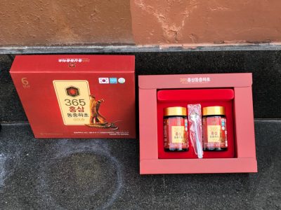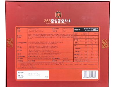 – Chiết xuất hồng sâm 30% (Hàn Quốc, 6 năm tuổi, thành phần hồng sâm 3mg/g, phần rắn 2.55%. Tỷ lệ hỗn hợp sâm nguyên liệu: Củ hồng sâm 70%, râu và rễ hồng sâm 30%), chiết xuất hỗn hợp thực vật (phần rắn trên 60%, táo đỏ, rễ cát căn, ngải cứu, rễ đương quy, rễ thiên cung, rễ cây mẫu đơn, cây hoa chuông, rễ địa hoàng, gừng, hoàng kỳ, quế, nấm phục linh, cam thảo), chiết xuất đông trùng hạ thảo hoa tuyết 1,65% (sản xuất trong nước, phần rắn trên 0,5%, nước tinh khiết, đông trùng hạ thảo hoa tuyết).